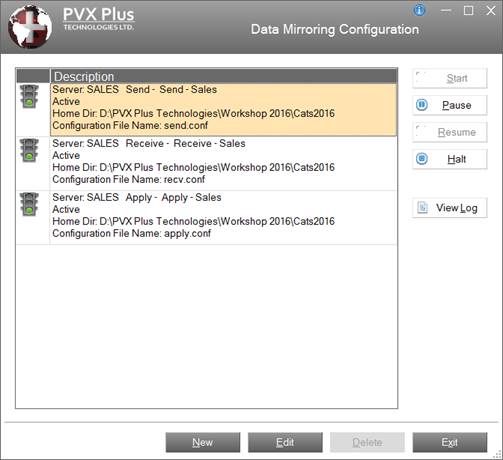 Data Mirroring Configuration simplifies the setup and maintenance of the Data Mirroring system by providing an interface for configuring the Send, Receive and Apply processes, monitoring the activity for each process at a glance and viewing a detailed activity log.