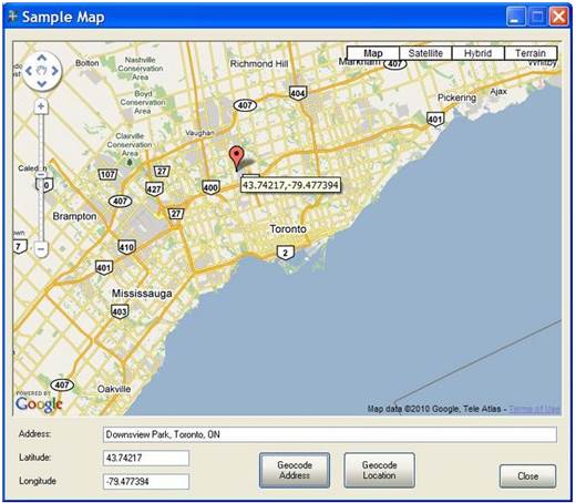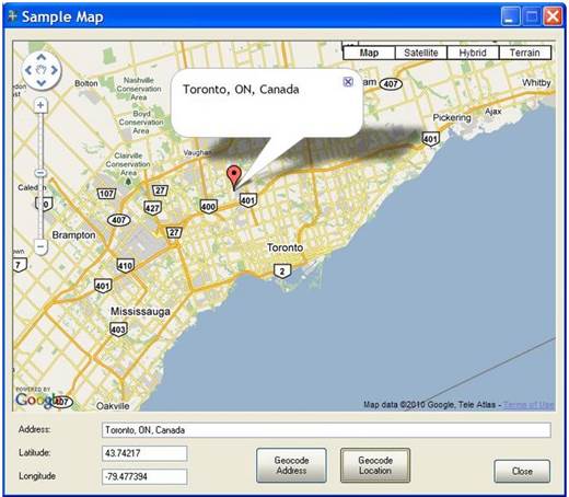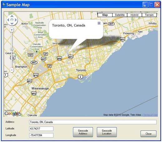 This example shows just a few of the properties, methods and events available to the Google Maps Extended Control.