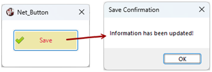 Click OK. Save and Test the panel. In Test mode, click the button, and a message box will display.