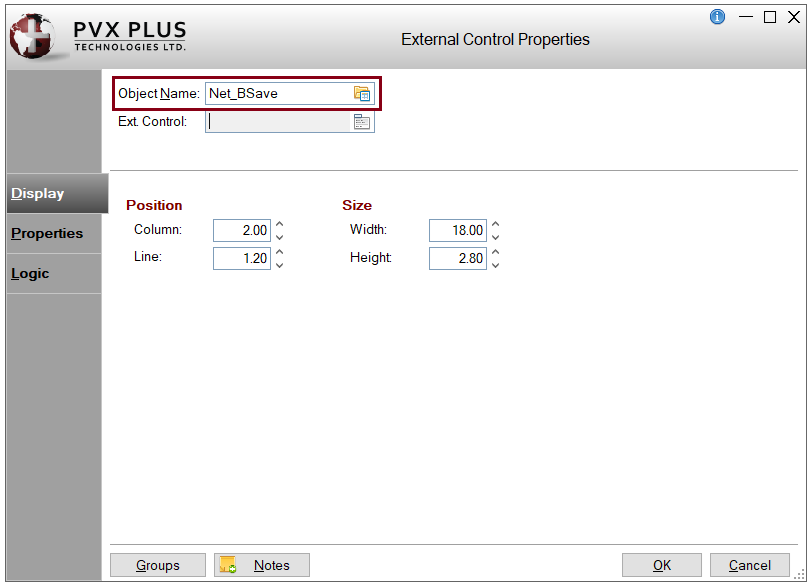 In the Object Name field, enter the control name or object handle. For this example, enter: Net_BSave