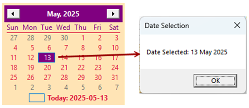 msgbox "Date Selected: "+fd$,"Date Selection"