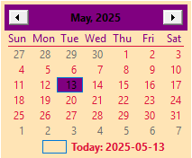 net_calendar'titlebackcolor$=color'purple'pvxhandle$ ! background color of the title area (month and year).