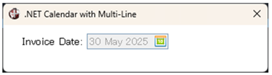 The position of this control becomes important later with respect to the coordinates used when defining the .NET Calendar object. With the multi-line control in this position, the .NET control may be positioned at Line 2, Column 16 so that it displays just below the multi-line. |