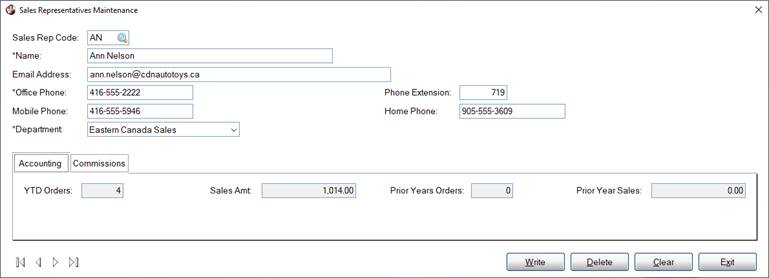 In the Data Dictionary, all four fields are defined as Numeric with the Data Class named SalesAmt. The Data Class defines the format used to display these amounts. These fields are also defined as Read-Only fields. As a result, they should remain disabled when the file maintenance panel is processed. | |||