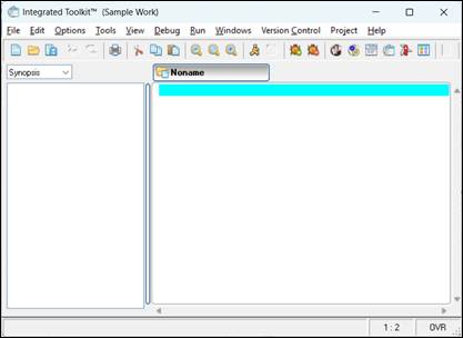 You will now open and close a task. Double click on the Program Editor (*IT) task at the top of the Menu tree view. The Integrated Toolkit™ window opens, showing the name of the current project (Sample Work) in the title bar. Close this window by clicking the X in the top right corner. |