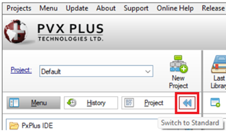 Hover the mouse over the double left arrow button to the right of the Project button. Notice the button tooltip that reads "Switch to Standard". |