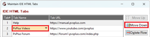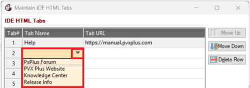 These steps show you how to add a predefined folder tab (i.e. PxPlus Forum, PVX Plus Website, Knowledge Center and Release Info) to the IDE.