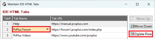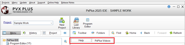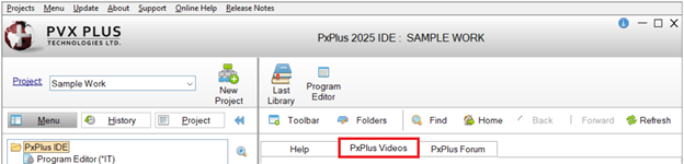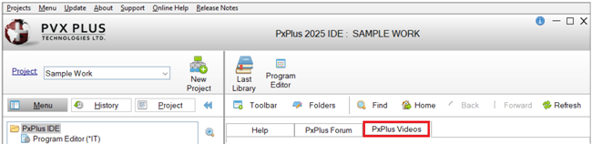 The PxPlus Forum tab is removed. Two tabs, Help and PxPlus Videos, remain. |