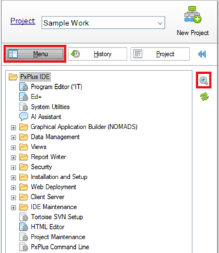 Selecting this button displays a list of all PxPlus tasks and utilities in a tree view format. |