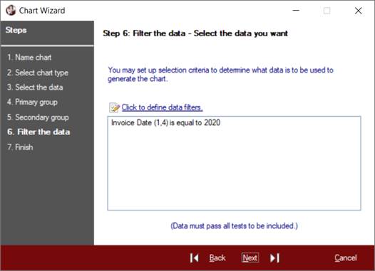 Set up selection criteria to determine what data is to be used to generate the chart.