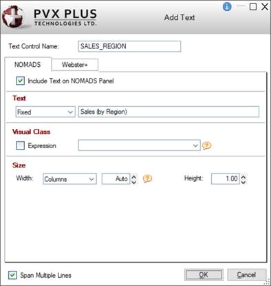 (Available when NOMADS Panel check box is selected for Form Type) When adding new Text, this check box is selected by default to enable the options on the NOMADS folder panel. | ||||