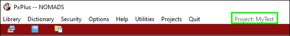 To get started on a graphical user interface development project in NOMADS, invoke the NOMADS Session Manager by running the PxPlus program "*nomads". Run this directly from the PxPlus Command line either by entering RUN "*nomads" or by simply entering nom. You can also use a shortcut that has been set up for this purpose. During installation, PxPlus for Windows places a NOMADS shortcut under the group PVX Plus Technologies > PxPlus, which can be accessed via the Windows Start menu.