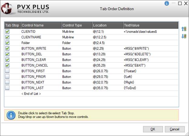 The current order is listed. This can be changed by moving control names into a new order either by using the drag-and-drop method or by using the Move Up/Move Down buttons beside the list.