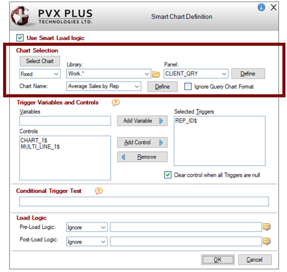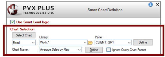 Click the Smart Load button: • When defining Smart Charts, the Smart Chart Definition window is displayed, which includes additional Chart Selection options.