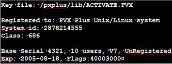 To activate the product with the 25-character key(s) provided, invoke the program pxpreg found in the target directory. | |