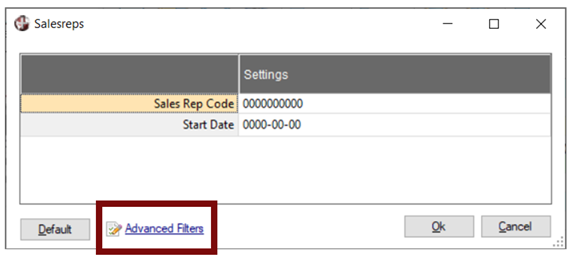 If Parameters have been defined for the report, the Advanced Filters hyperlink button on the generic interactive parameter interface is used to invoke the end-user Define Filters window: