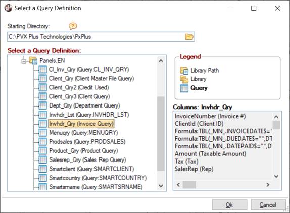 (The ability to select a query definition as an input source was added in PxPlus 2020.) | |||||||