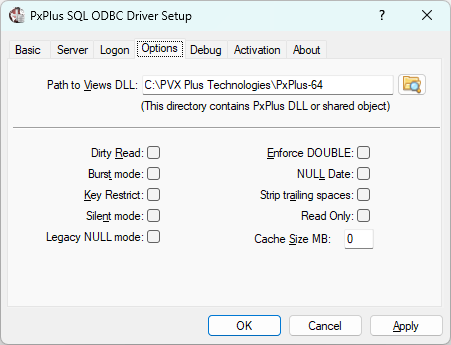 PxPlus SQL ODBC Driver Configuration (Windows) |