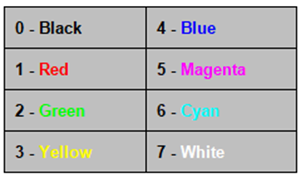 Sets numeric colour code to be used for breakpoints and the colour used by the system for various information messages (pathname on a save, last reported error, etc.).
