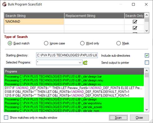 When selected, the Programs list box will display only the programs in which a match was found. (added in PxPlus 2017) When not selected (Default), the Programs list box will display all the programs that were searched by the utility, regardless if a match was found. | ||||||||