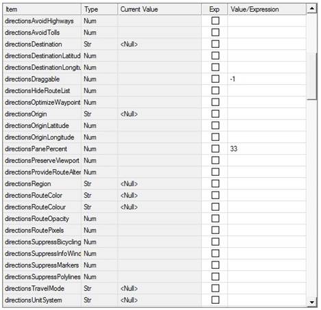 When set, the above properties will affect any subsequent directions requests; they have no effect on currently displayed directions. These properties may be set in the map definition or any time prior to making a directions request. | |||||||||||