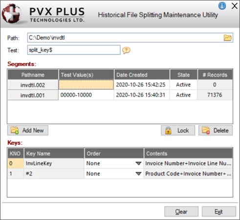 Entering the pathname for the file displays all the existing Segments and their respective information, as well as the Keys structure. |