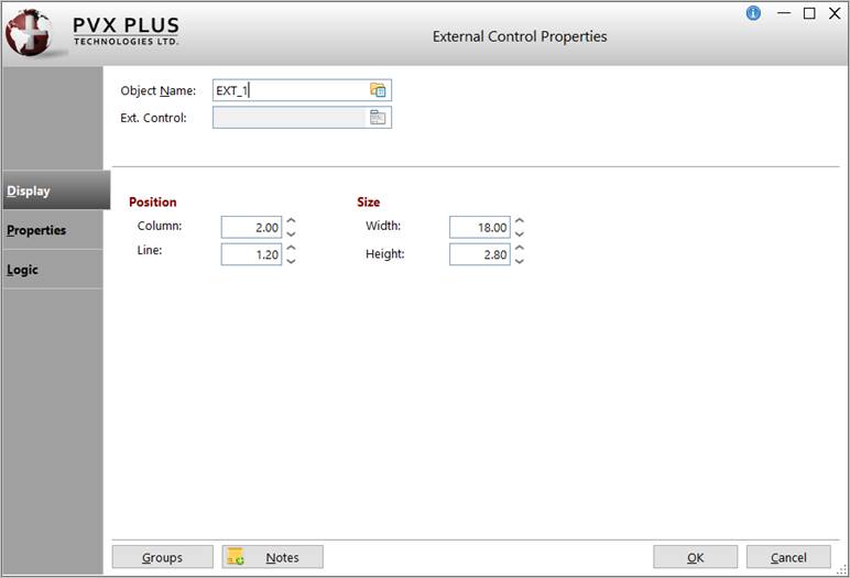 For the Ext. Control field, click the Query button. From the list that displays, select the type of External Control you want to create. For this example, select: .NET Controls