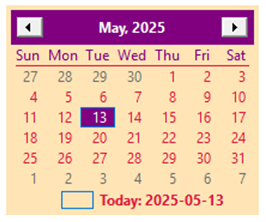 net_calendar'titlebackcolor$=color'purple'pvxhandle$ ! background color of the title area (month and year).
