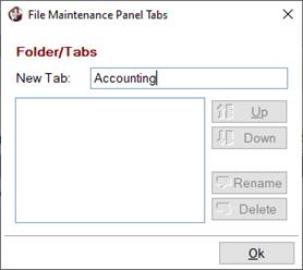 Click OK to exit the File Maintenance Panel Tabs dialog. | |||