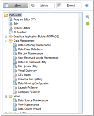 Projects provide a structured method for grouping and managing the various tasks (i.e. objects, programs, data files) and settings used in PxPlus for the development of business applications.