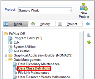 Under Data Management, left click on the Data Class Definitions task, hold down the mouse button, and drag the mouse pointer to an empty spot in the toolbar. |