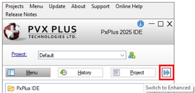 Hover the mouse over the double right arrow button to the right of the Project button. Notice the button tooltip now reads "Switch to Enhanced". |