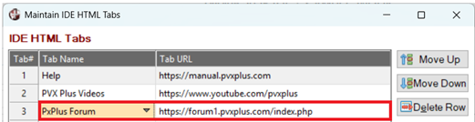 These steps show you how to add a predefined folder tab (i.e. PxPlus Forum, PVX Plus Website, Knowledge Center and Release Info) to the IDE.