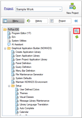 Selecting this button displays a list of all PxPlus tasks and utilities in a tree view format. |