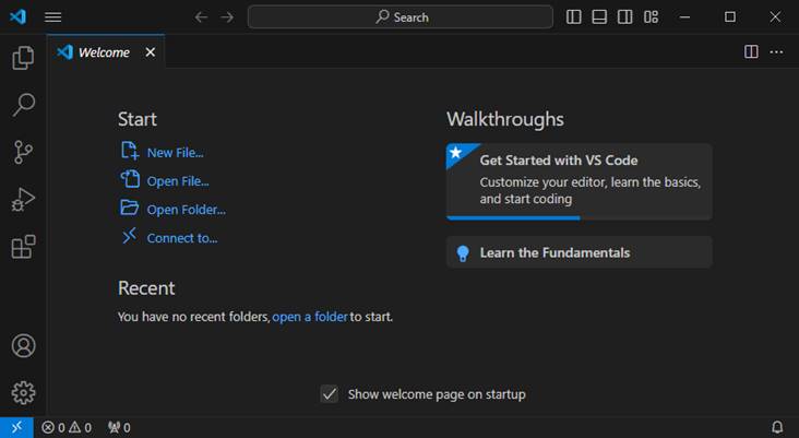 Download and install Visual Studio Code from the Visual Studio Code Web site https://code.visualstudio.com/ for your platform (i.e. Windows). If you are new to Visual Studio Code, this Web site is a great resource to learn more about it. |