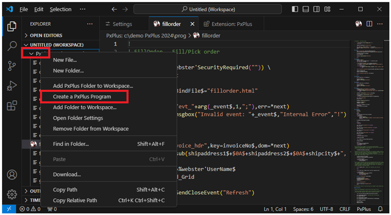 With the PxPlus extension now set up, you are ready to edit or create a PxPlus program by using the steps below.