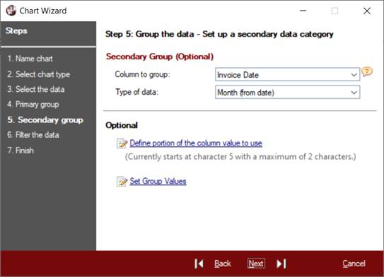 Once a primary group has been set up, you have the option to specify a secondary data category to further refine the chart definition.