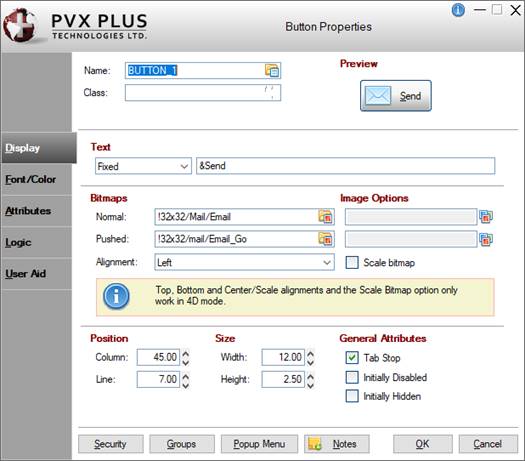 (The Special Button Style drop box was added in PxPlus 2024.) |