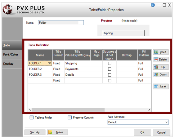 The Tabs Definition grid on the Tabs/Folder Properties dialogue is used to add, remove or modify the sub-panels in your folder control.