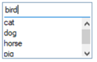 The Variable List Box control on the left displays a list of predefined items. Rather than selecting from the list, a different value (bird) has been manually entered. |