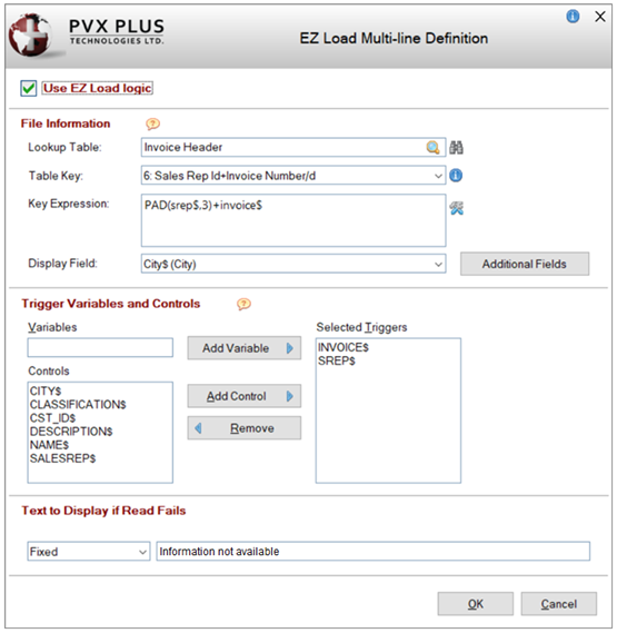 (The Generate a KEY=F1$:F2$ expression check box was added in PxPlus 2023.) (The ability to define numeric keys and multi-segment keys for an EZLoad Multi-Line was added in PxPlus 2023 Update 1.) |
