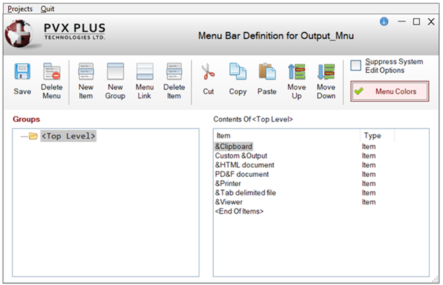 (The Menu Bar Definition task on the IDE was added in PxPlus 2023 Update 1.)