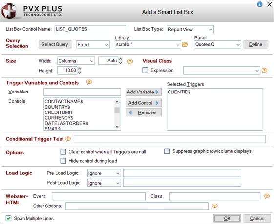 Many of these options are also available when defining a Smart List Box control in the NOMADS Panel Designer (see Defining Smart Controls), except for these differences:
