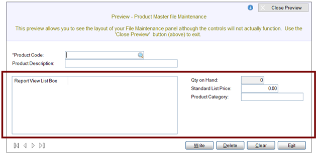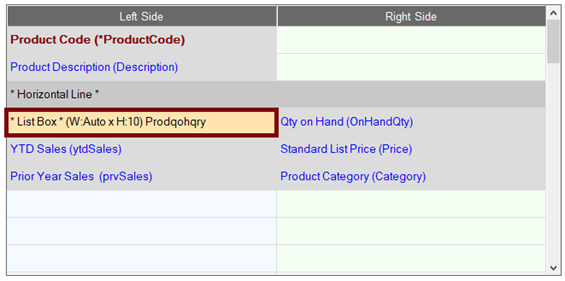 This panel layout shows a List Box on the left side, a field in the adjoining cell on the right side, and fields in the rows below.
