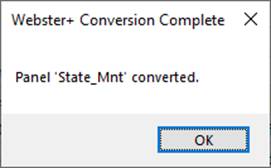 If this utility is accessed from the right click popup menu, only the selected panel is converted, and the conversion happens without displaying an additional dialog. When the conversion is completed, a message box displays.