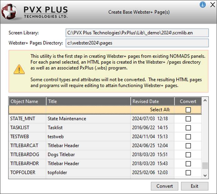 (The Create Base Webster+ Page(s) utility was added in PxPlus 2025.)
