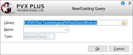 Enter the name of the query or click the drop-down arrow to select from a list of the existing queries in the library. If the query name does not exist, you will be able to create the new query when you click Ok. Note: |