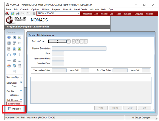 (The Incl. Label check box was added in PxPlus 2018 Update 0001.)