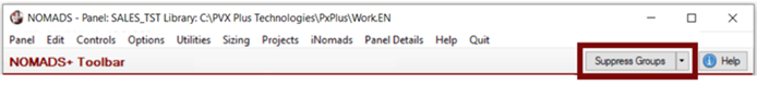 The Suppress Groups utility is invoked from all three versions of the NOMADS Panel Designer (see NOMADS+ Toolbar, Folder Style or Property Sheets) by using any of the methods below.
