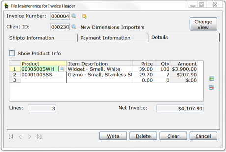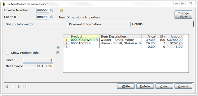 In this example, two views are available for the Invoice Header maintenance panel.